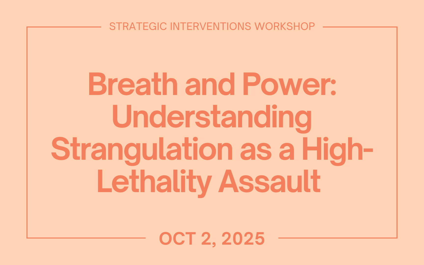Join us for Breath and Power, a powerful full-day hybrid workshop that brings together professionals across sectors to recognize, assess, and respond to strangulation with clarity, urgency, and care. Grounded in trauma- and violence-informed practice, this training offers a deep understanding of the medical, legal, and psychological impacts of strangulation, along with tools for documentation, prosecution, and survivor advocacy.