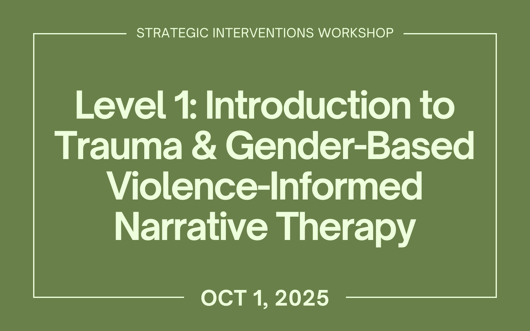 Strategic Interventions presents a specialized training series for mental health professionals, counsellors, therapists, social workers, and frontline service providers. These workshops equip participants with practical tools to support trauma survivors using a trauma- and gender-based violence-informed narrative therapy approach. Rooted in social justice and feminist perspectives, the training fosters a compassionate, effective, and culturally responsive practice.