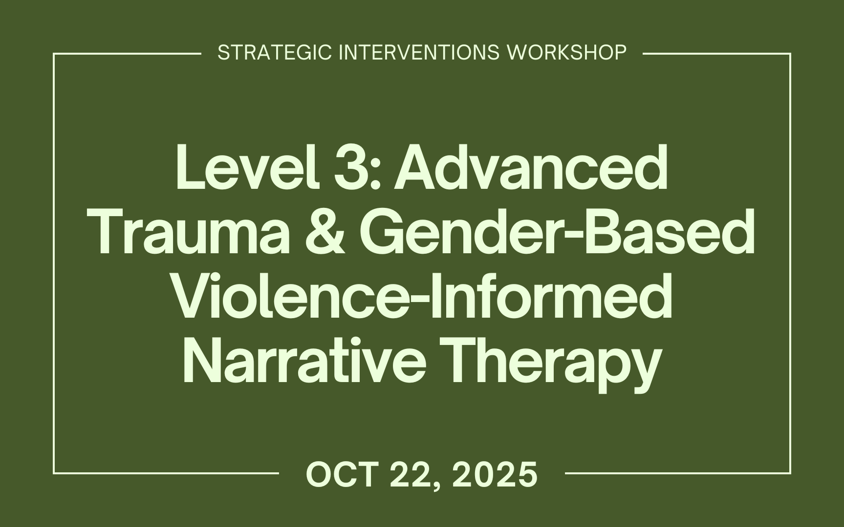 Strategic Interventions presents a specialized training series for mental health professionals, counsellors, therapists, social workers, and frontline service providers. These workshops equip participants with practical tools to support trauma survivors using a trauma- and gender-based violence-informed narrative therapy approach. Rooted in social justice and feminist perspectives, the training fosters a compassionate, effective, and culturally responsive practice.